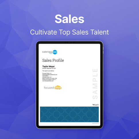 Everything DiSC® Sales assessment is a classroom training and personalized learning experience designed to help salespeople successfully create customer-centric interactions that improve results. Everything DiSC Sales assessment teaches participants to stretch beyond their natural Sales style to more effectively adapt to their customer’s preferences and expectations— regardless of the customer’s unique buying style. The experience is sales-specific, with in-depth information, including tips, strategies, and action plans to help salespeople become more effective.